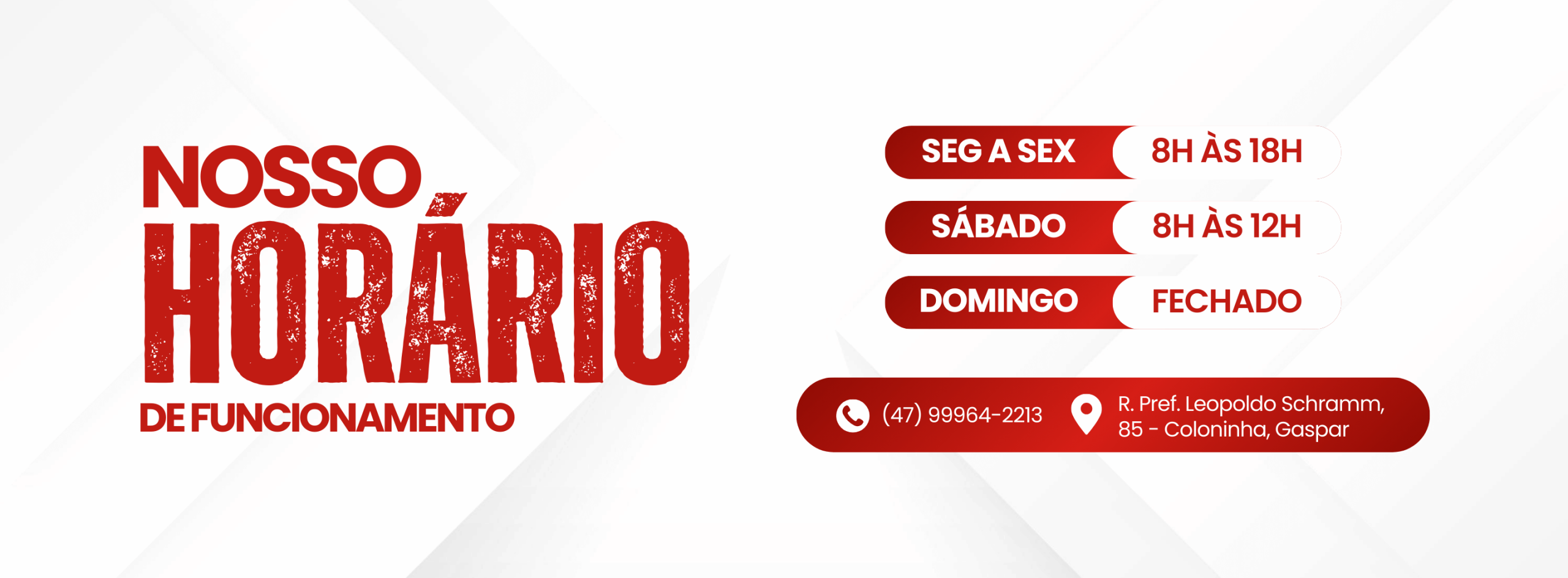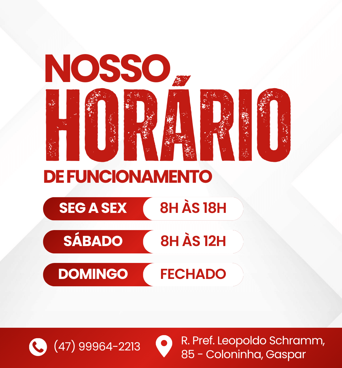 Segunda a sexta-feira 08:00 às 18:00